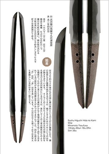 <訂正のお知らせ> 刀剣観想776号の1ページ、グラビアの「於武州樋口飛騨守九代孫保則」であるべきところが、「源保房」と誤表記がありました。訂正してお詫び致します。正しくは「孫保則」です。